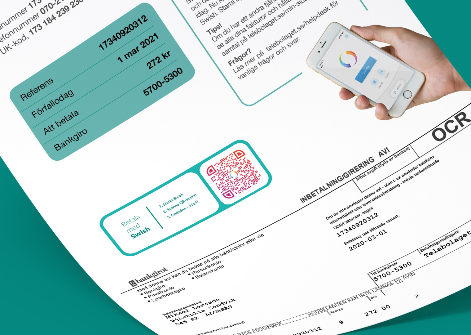 Vår egen betaltjänst där du kan koppla en betalning till dina utskick. Betaltjänsten kan användas med avisering genom SMS, e-post, fysiska brev eller ’Mina sidor’.