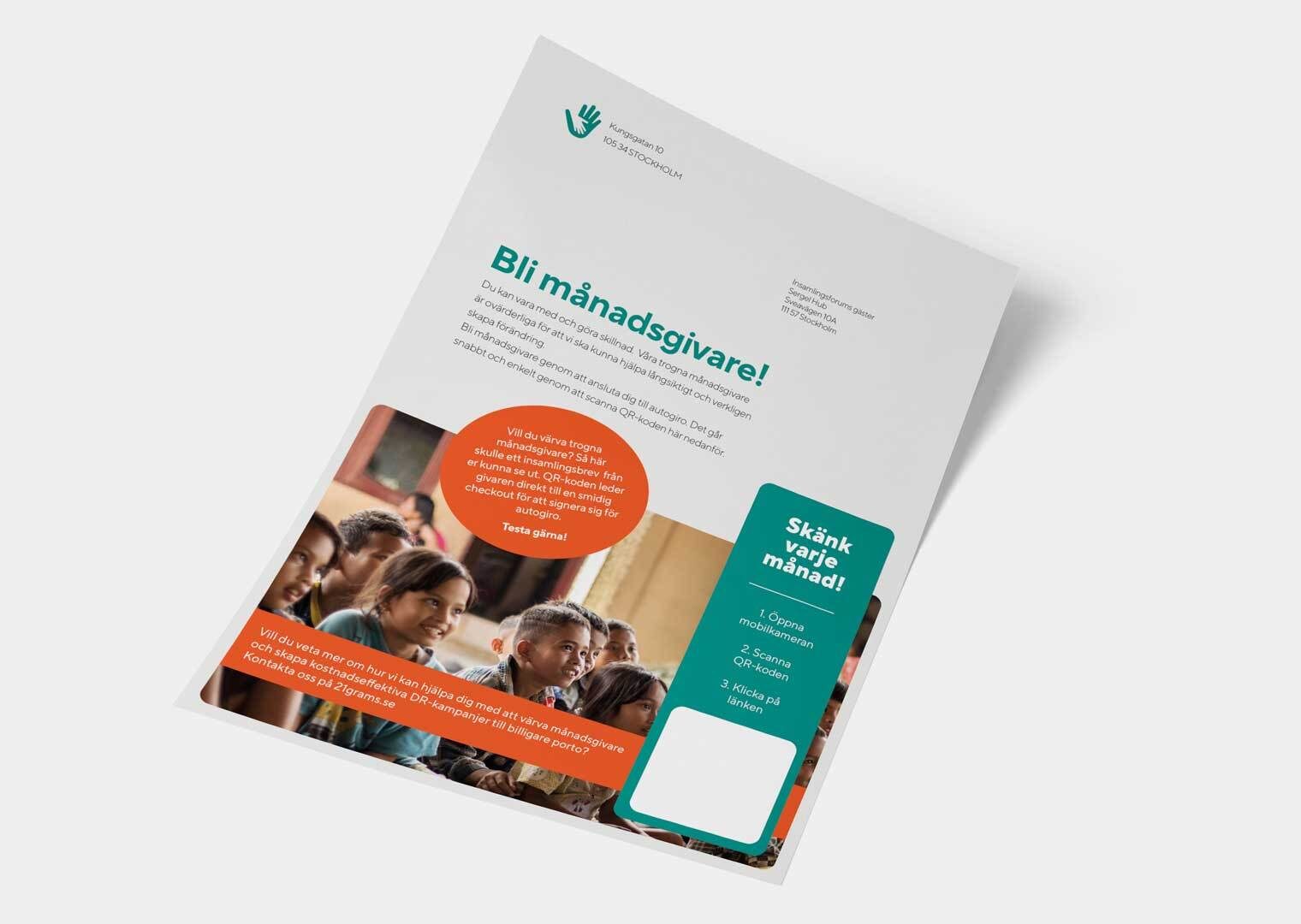 Ett smidigt sätt att värva månadsgivare via fysiska brev är att trycka en QR-kod som leder till en landningssida där man väljer betalsätt.